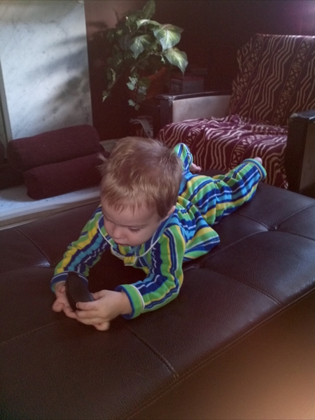 | At a drop-in at our local community centre - pushing the cart around was more fun than playing with the toys that went in the cart |